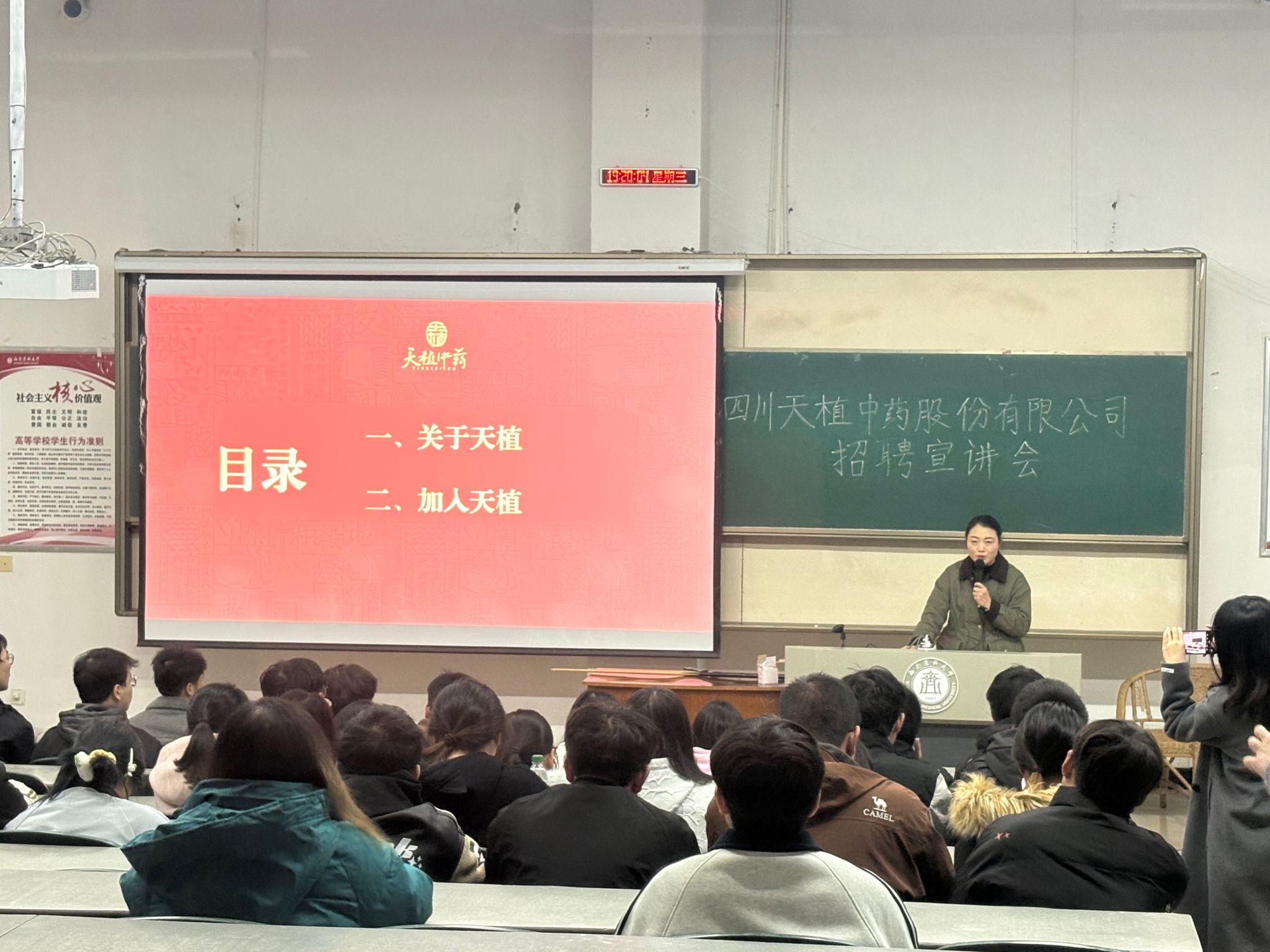 为拓宽就业渠道,加强校企联动,助力毕业生实现高质量充分就业,11月19日晚,人文与管理学院在荟文楼105教室成功举办四川天植中药股份有限公司校园...
