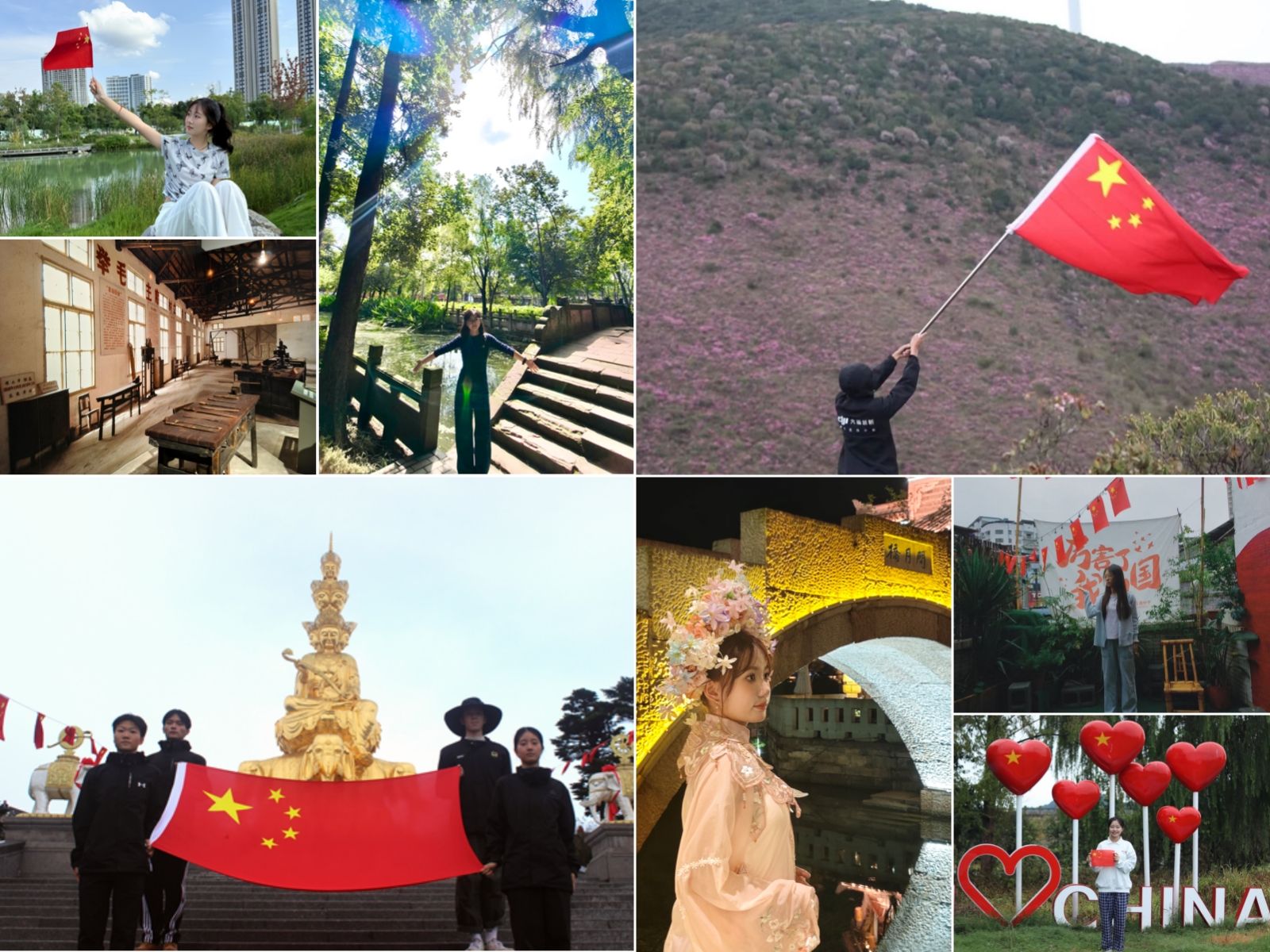以脚步丈量祖国山河,广袤无垠,用双眼见证盛世中华,璀璨夺目。活动期间,同学们寄情于景,以镜头为笔,以光影为墨,记录伟大祖国的壮丽山河与时代新貌。从与国旗同框的动人瞬间,到见证家乡发展的真实图景,再到捕捉自然风光的辽阔壮美,每一幅作品都凝聚着深沉的家国情怀。配合简洁有力的文字叙述,同学们表达了将个人理想融入复兴大业的共同心声,彰显了新时代青年“身在校园,心系家国”的精神风貌。