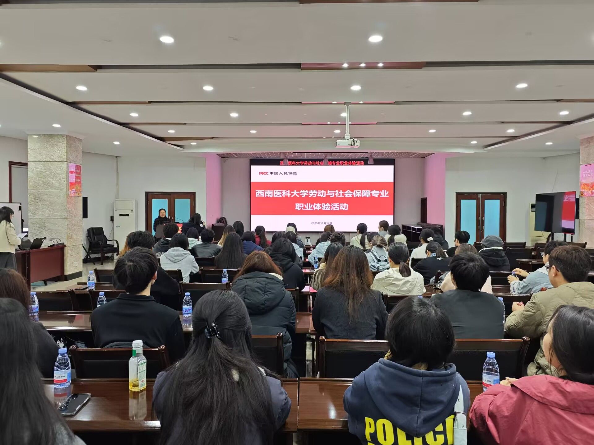 为进一步深化校企协同育人机制、拓展学生就业渠道,11月14日下午,人文与管理学院劳动与社会保障专业40余名师生在学院党委副书记马俊的带领下,走进人保财险泸州分公司,开展了以“探路保险行业实践,衔接社保专业发展”为主题的职业体验活动。