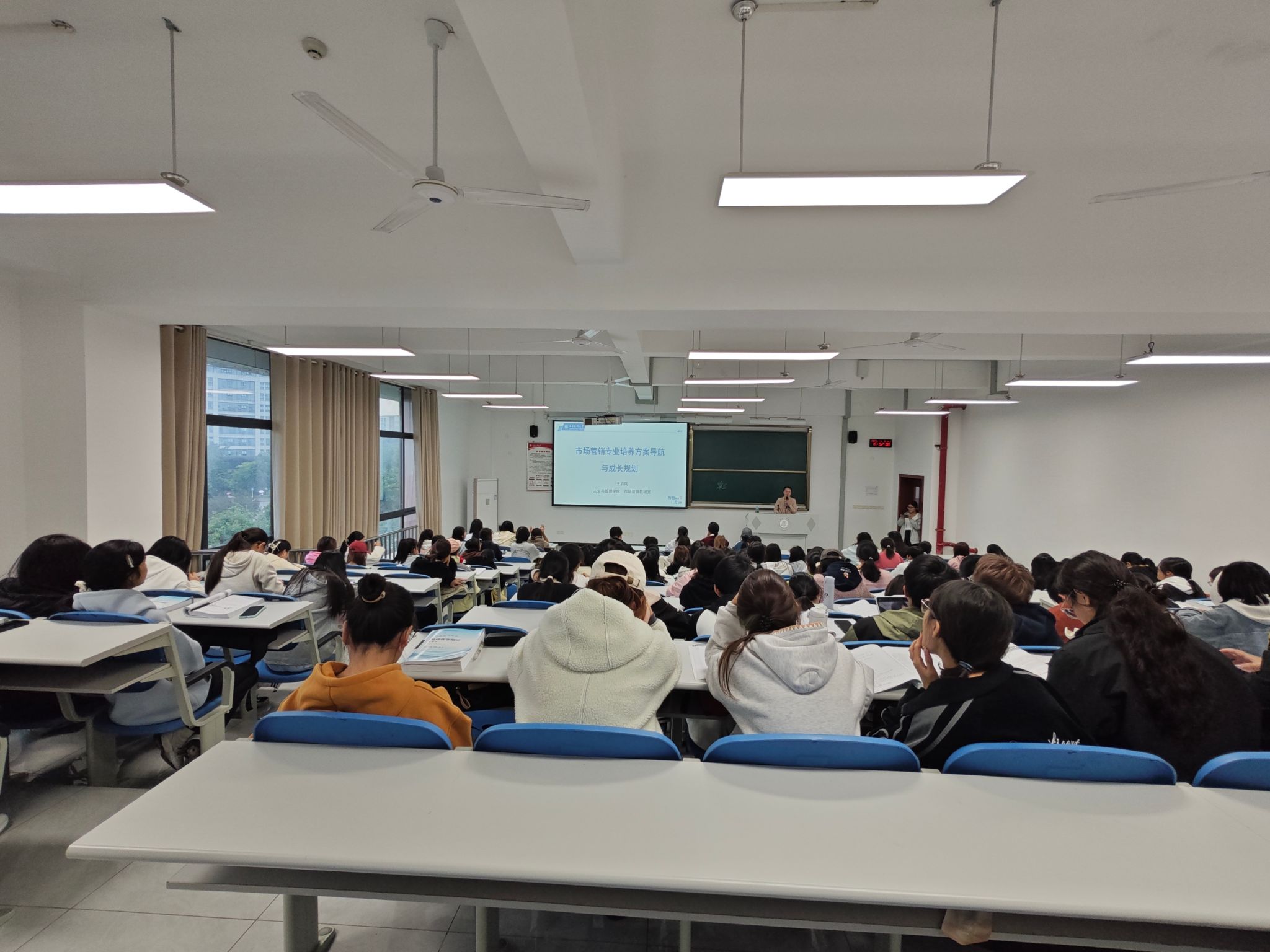 为帮助新生深入了解专业人才培养方案,明确学业发展方向,科学规划大学生活,11月3日下午,人文与管理学院市场营销教研室在学海楼502教室举办“市场营销专业培养方案导航与成长规划”专题讲座。本次讲座由王启凤老师主讲,2025级市场营销专业130余名学生积极参与。