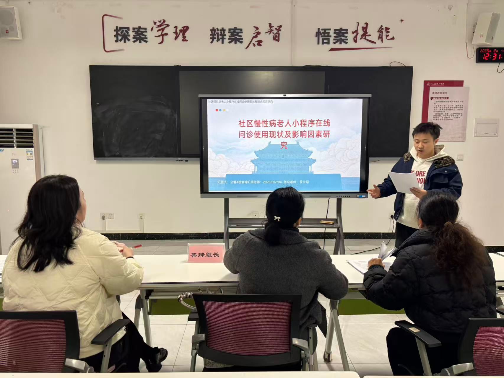 答辩过程中,同学们通过PPT演示,围绕选题背景与意义、国内外研究现状、研究内容与方法、创新点及写作提纲等方面进行了详细汇报。选题内容紧扣时代脉搏,涵盖了数字医疗建设、基层卫生服务理、医疗服务质量等多个卫生事业管理领域的热点与难点问题,充分展现了公管学子关注社会现实、理论联系实际的专业素养。