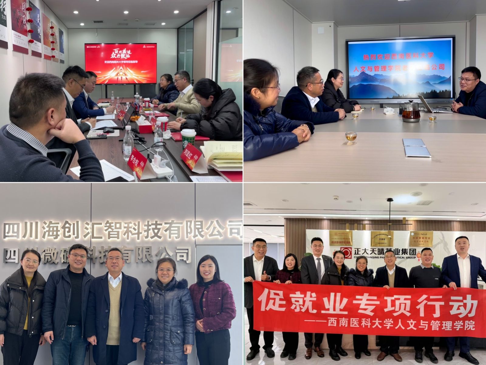 为深入贯彻落实国家关于高校毕业生就业工作的决策部署,深化校企合作与供需对接,全力开拓毕业生就业市场,12月10日,人文与管理学院党委书记谷满意、党委副书记马俊率队,携市场营销教研室副主任王启凤、教师刘显红一行,赴成都开展“访企拓岗”专项调研交流活动。