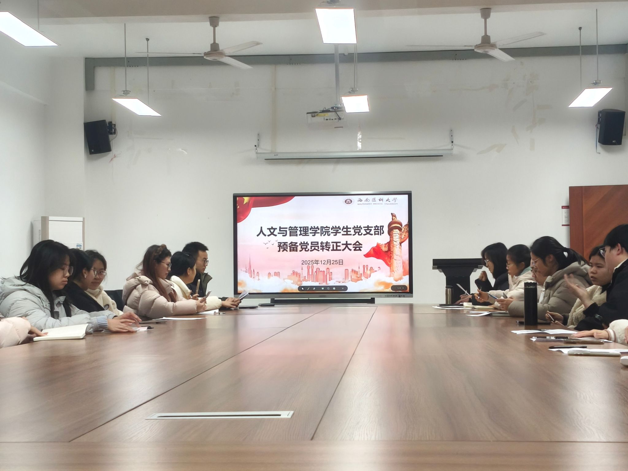 12月25日,人文与管理学院学生党支部于文渊楼233会议室召开了关于讨论预备党员吴世鹏同志转正的支部大会。人文与管理学院副书记马俊,学生党支部书记范丹丹,组织委员巫东梅,辅导员庞鹤,学生党员张金玉等12名正式党员,罗言一等8名预备党员参加了本次会议。大会由学生党支部书记范丹丹主持。