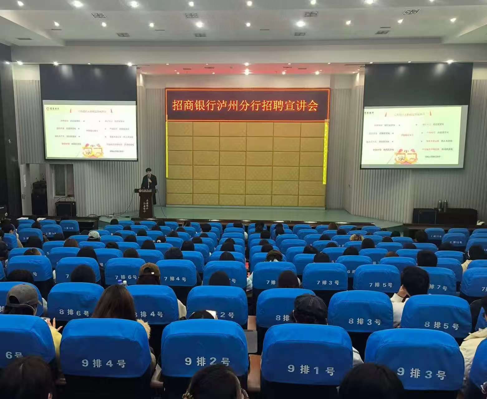 为进一步拓宽毕业生就业渠道,深化校企合作,助力毕业生实现高质量充分就业,3月19日晚,人文与管理学院邀请招商银行泸州分行于城北校区第二学术报告厅举办校园招聘宣讲会。招商银行泸州分行3位工作人员以及学生科科长范丹丹出席此次宣讲会。会议由银行工作人员黄柳主讲,现场气氛热烈。